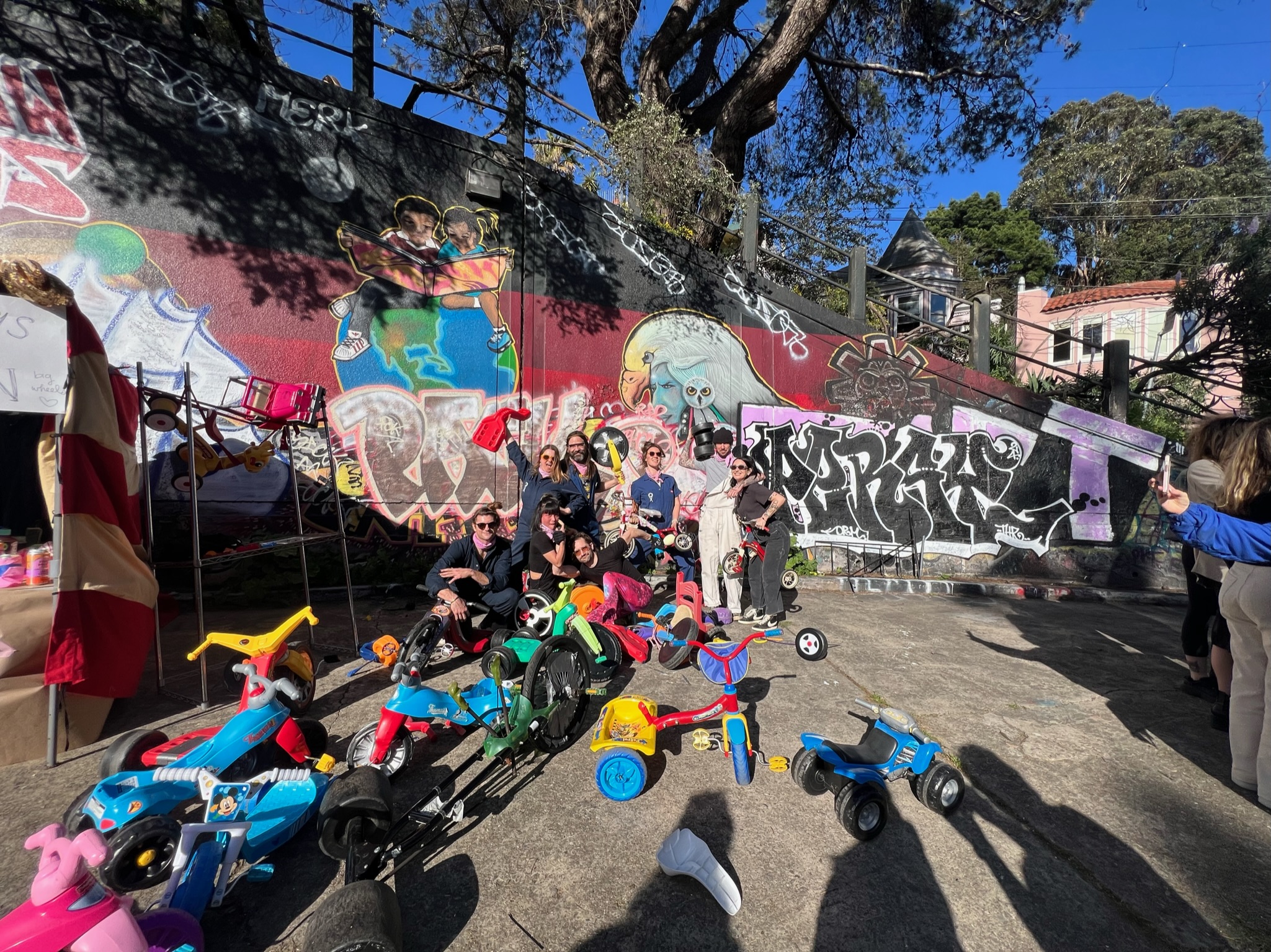 DIY Pit Crew - an improv troupe providing free materials and upgrades, while upcycling / salvaging any broken big wheels at the annual Bring Your Own Big Wheel event.